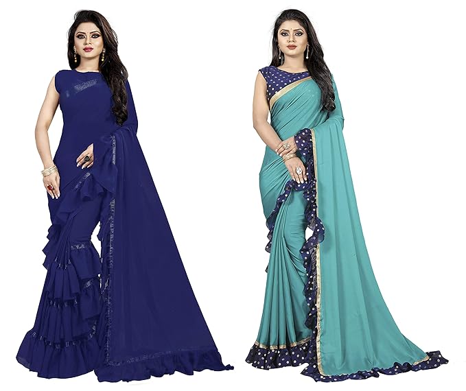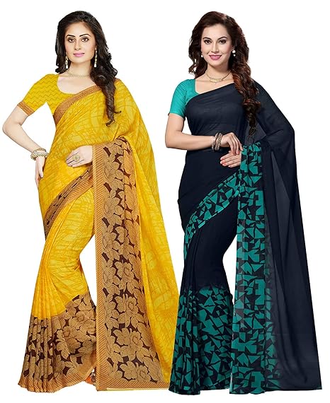 Buy Ishin Combo Of 2 Yellow Navy Blue Poly Georgette