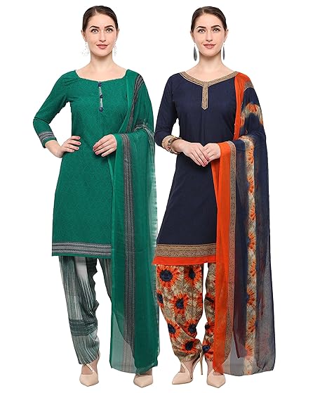 Combo Of Two Chanderi Silk Churidar Suit In Navy Blue And
