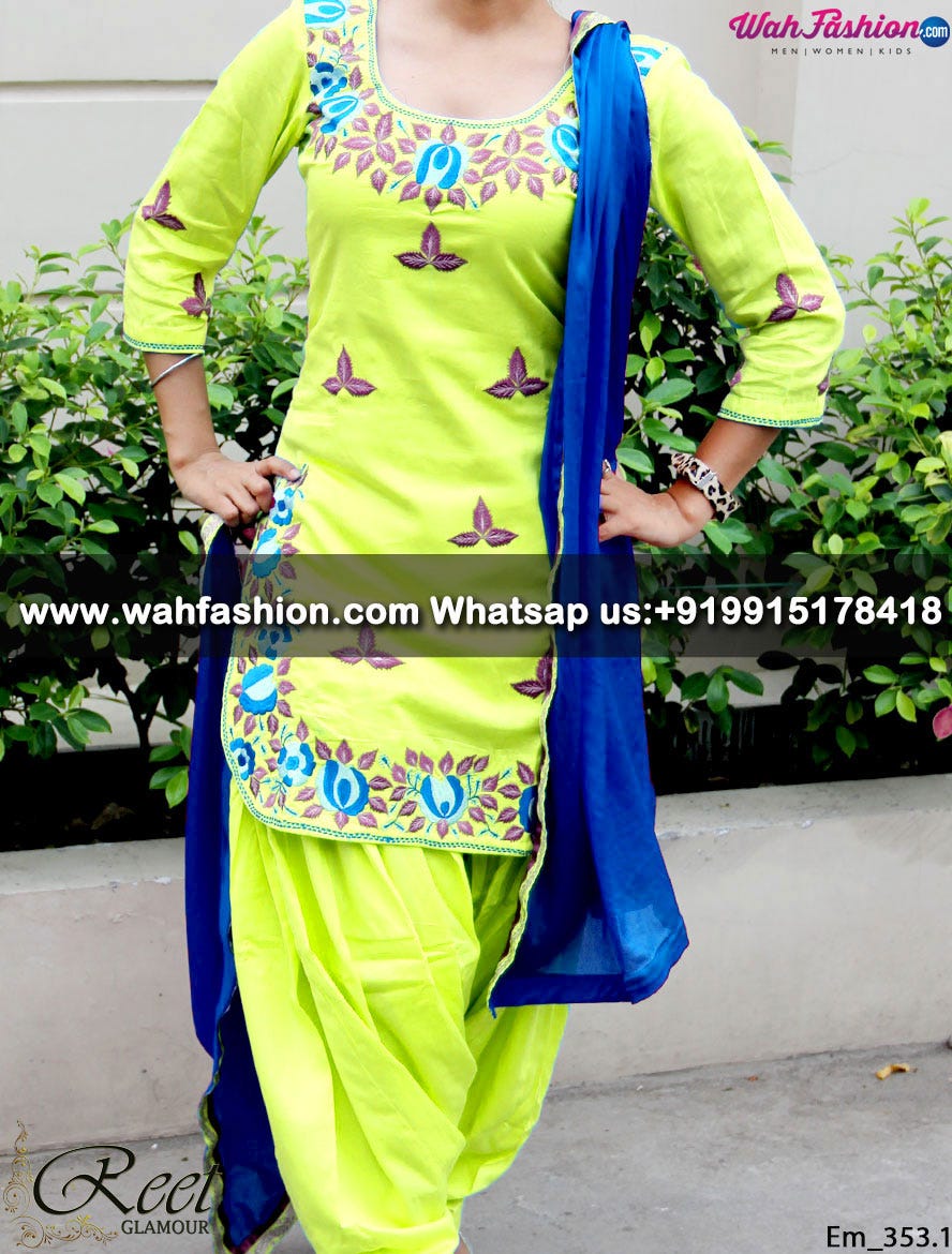 Beautiful Parrot Green Navy Blue Patiyala Suit