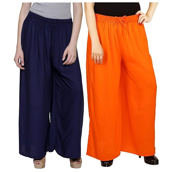 Evection Premium Rayon Cotton Palazzo Combo Of 2 Navy Blue