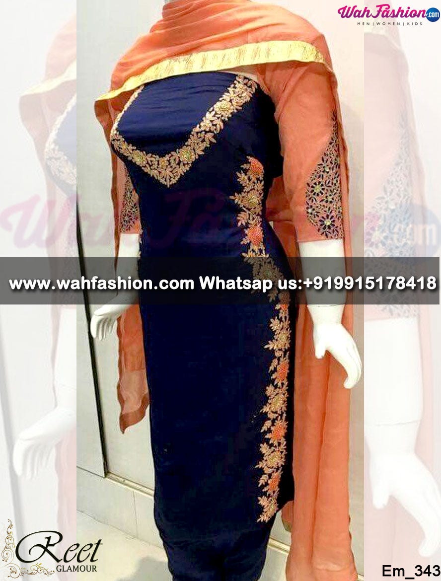 Gopi Fashion Summer Collection Navy Blue Orange Pure Cotton With Embroidery Craft Work Un Stitched Salwar Suite